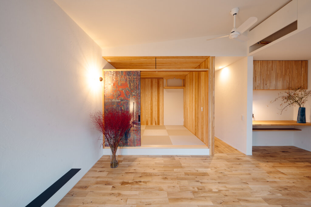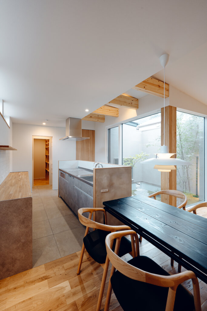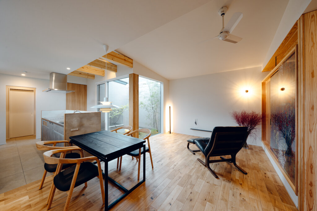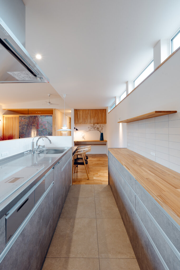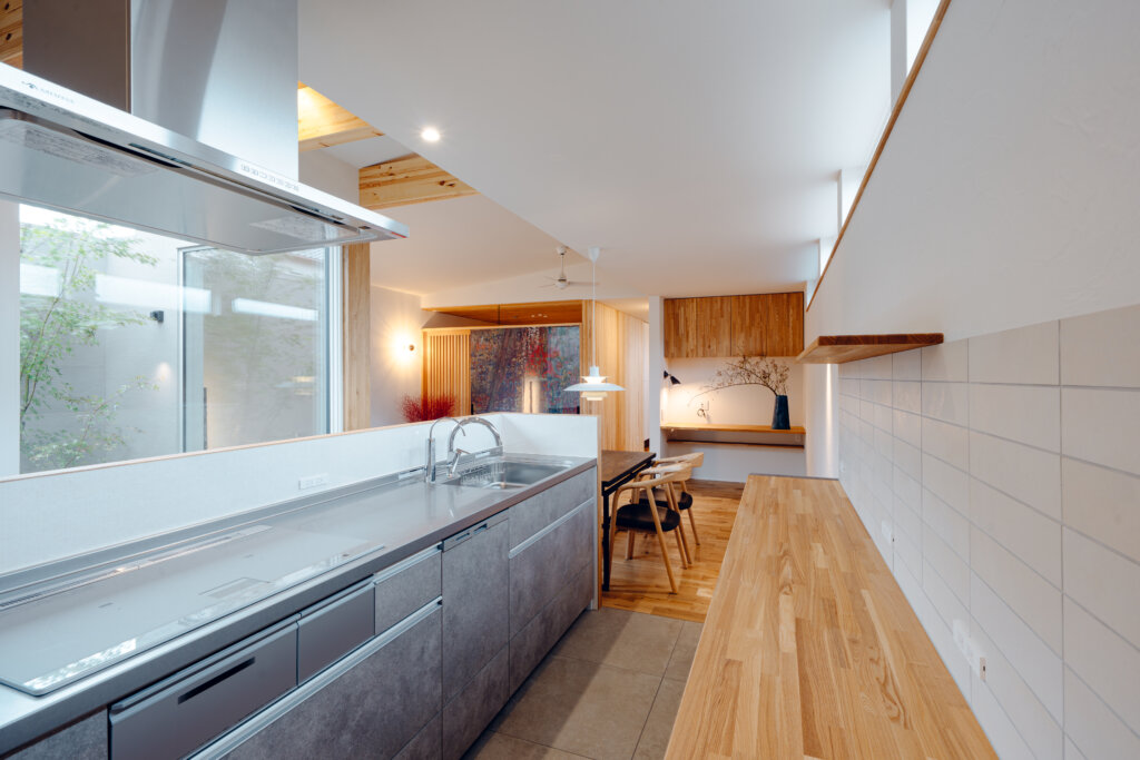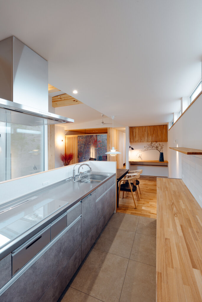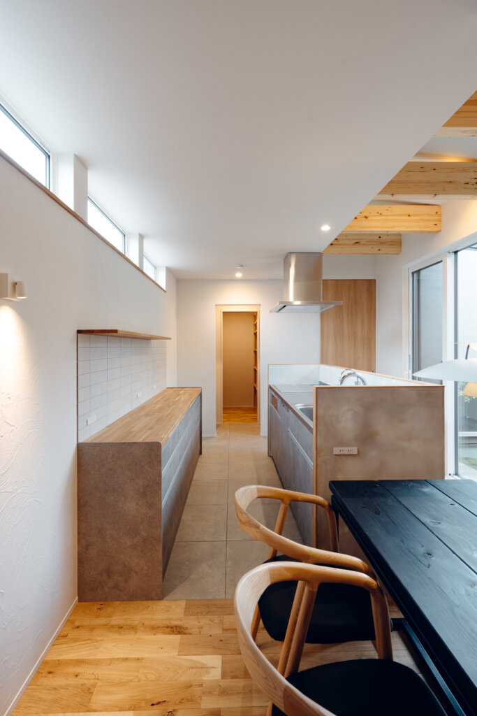 This compact single-story home reflects a growing trend in recent years. The space features a warm atmosphere that highlights the natural texture of wood—an aesthetic characteristic of YAMATO no Ie. The island kitchen, in particular, is a feature many people would admire, and I photographed it with care to capture its appeal in a natural and balanced way.